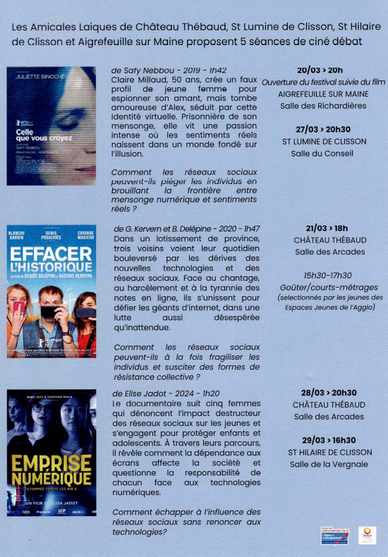 Les Amicales Laïques de Château-Thébaud, St-Lumine de Clisson, St Hilaire de Clisson et Aigrefeuille sur Maine proposent 5 séances de ciné-débat…